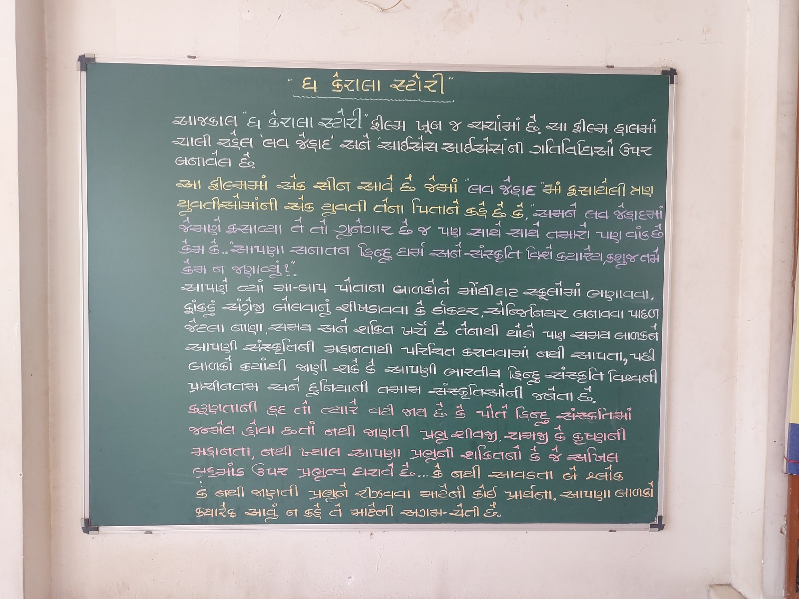 The message insinuated that the film revolved around Love Jihad and why parents, other than helping children consider fulfilling careers, should also invest time in imparting knowledge about their religion. In the film, a girl tells her father that her parents too are criminals, for they never made an effort to make them understand their religion or culture. The underlying theme is that the modern Hindu girl is largely ignorant of the deities: Lord Shiva, Lord Rama and Lord Krishna.