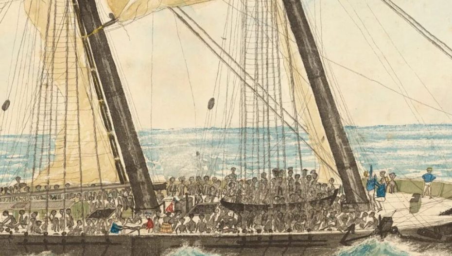 Amitav Ghosh’s thinly-veiled fictional trilogy, The Sea of Poppies has its seeds in the girmitiyas – the history of Indians who went out to serve as indentured labour in far-flung lands. But the character Deeti, her lover and all their ship mates on the former slave ship Ibis did so at a time when India was under colonial rule and decidedly unfree. Also, Ghosh did not place even his fictional characters in chains on board the refurbished slave ship.