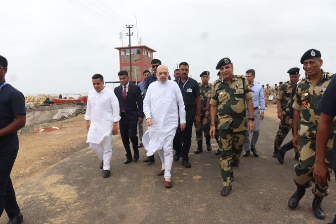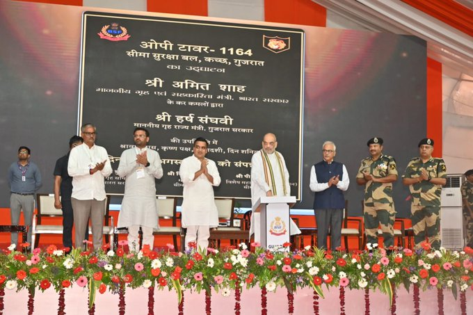 According to an official release by BSF Gujarat, Amit Shah laid the foundation stone for a Mooring Place at Koteshwar for the Border Security Force (BSF) in Kutch and he also inaugurated the newly constructed Chidiyamod-Biarbet Link Road and OP Tower in the Harami Nala area of the district.