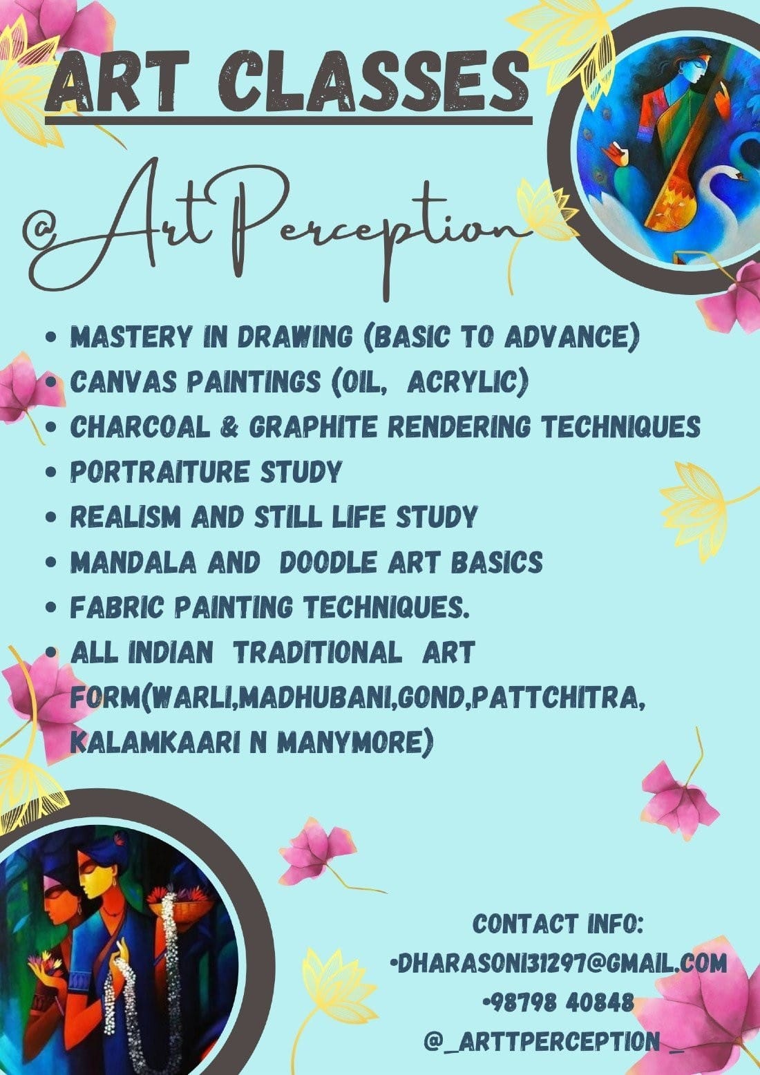 Where: Art Perceptions Studio, Nr Cambay Hotel, Jivraj Park