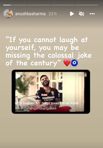 His laid-back avatar appears to have impressed Anushka, who re-posted it on Instagram Stories. “If you can’t laugh at yourself, you might be missing the enormous joke of the century,” she added beneath. She immediately followed it up with a heart emoji.