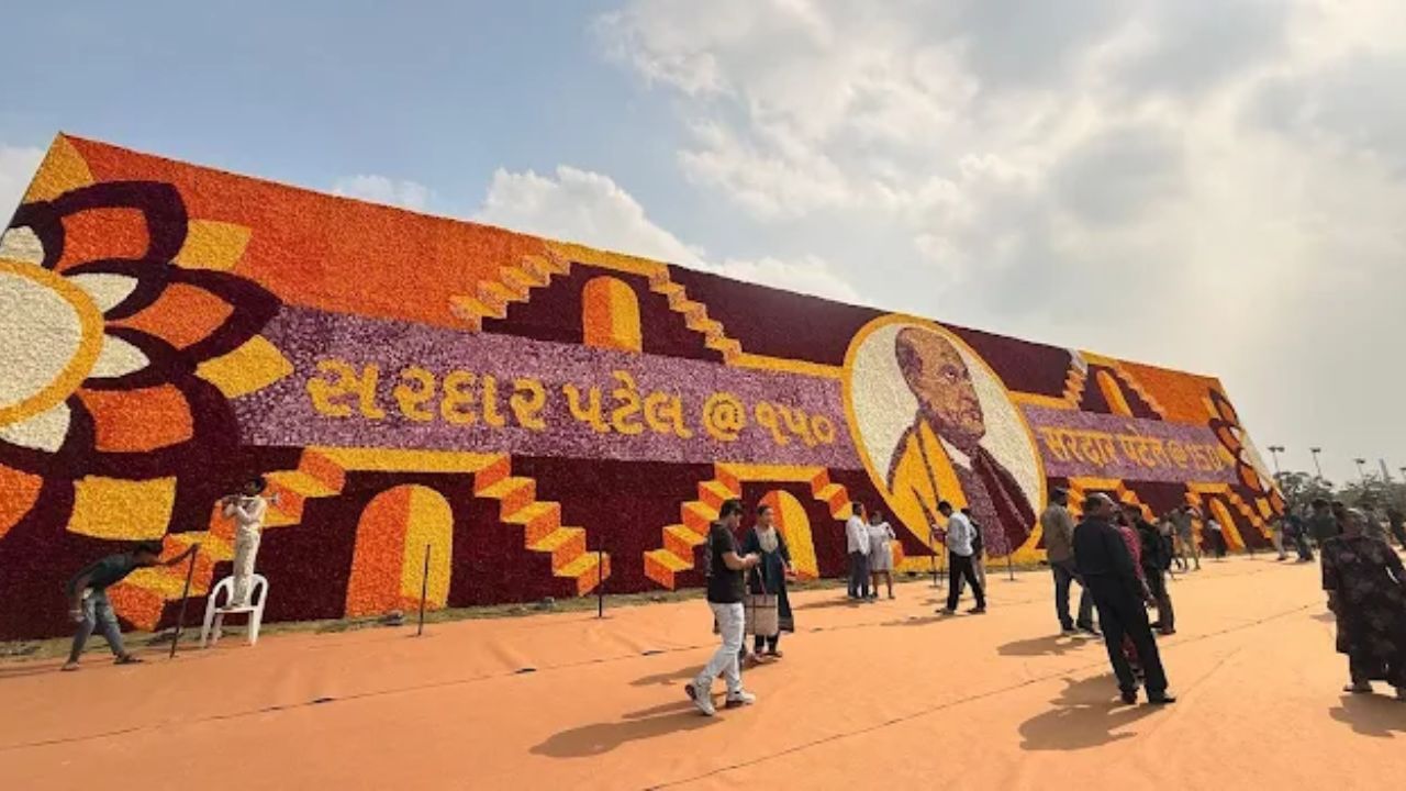 Two such records were highlighted. One was the world’s largest flower mandala, measuring 33.6 metres in diameter—a geometric pattern created using millions of fresh flowers and promoted as a central attraction of the National Unity Zone. The other was the world’s largest floral portrait of Sardar Vallabhbhai Patel, covering approximately 329 square metres, created to mark his 150th birth anniversary.